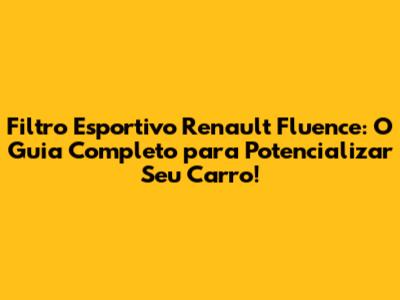Filtro Esportivo Renault Fluence: Guia Completo Para Turbinar Seu Carro!