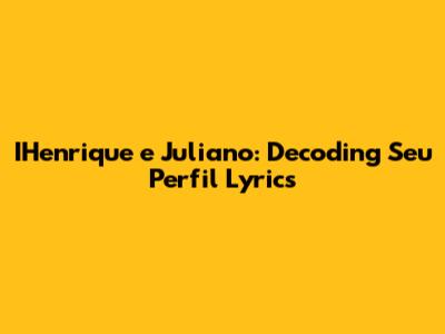 IHenrique E Juliano: Decoding 'Seu Perfil' Lyrics