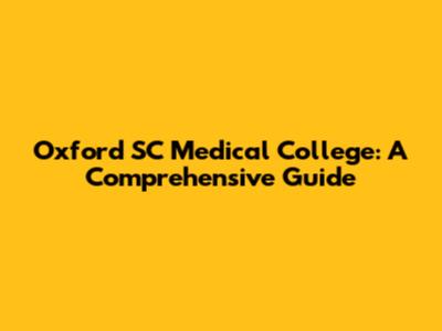 Oxford SC Medical College: A Comprehensive Guide